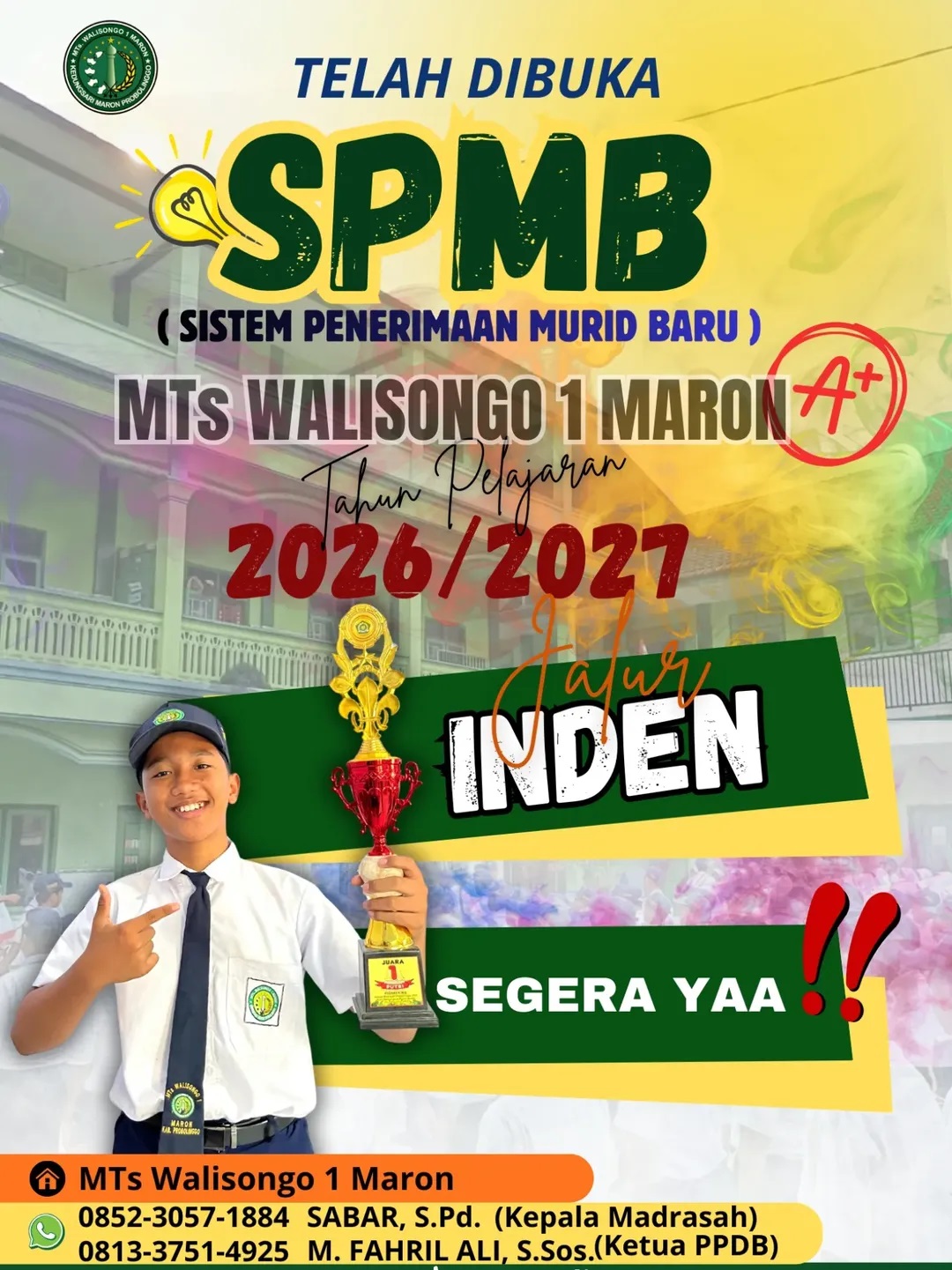 Telah Dibuka Pendaftaran Inden Gelombang 1 SPMB MTs. Walisongo 1 Maron Tahun Ajaran 2026–2027
