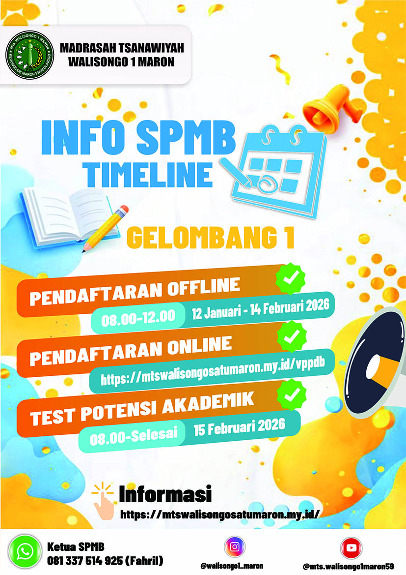 INFO SPMB GELOMBANG 1 MTs Walisongo 1 Maron Tahun Pelajaran 2026/2027